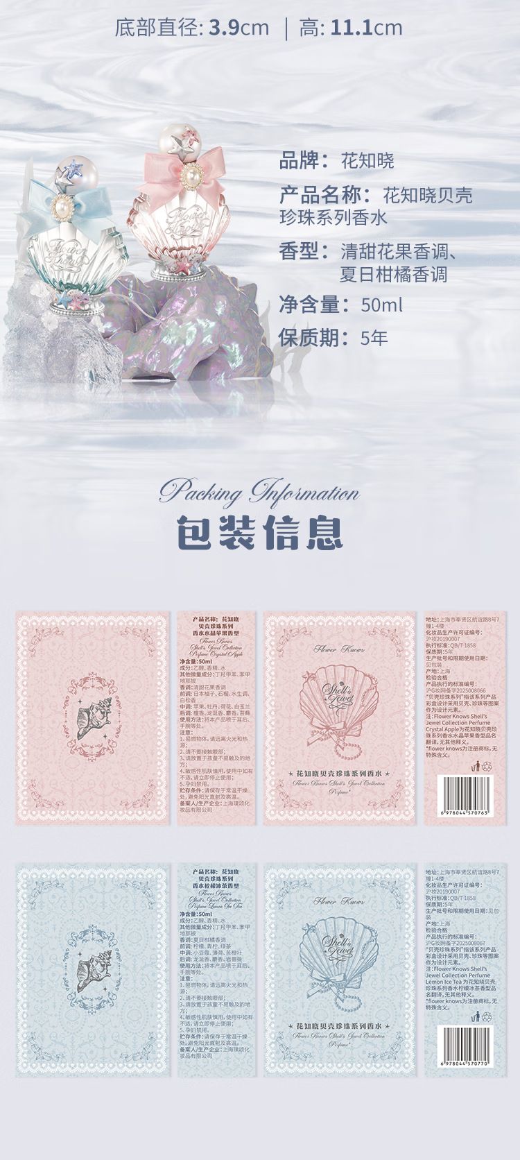 花知曉貝殼珍珠系列香水淡香水花果香水日常約會彩妝送女朋友禮物